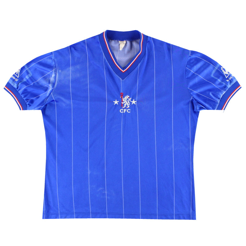 Size Details – Small (22″ armpit to armpit, 24″ length) Condition Details – Pristine colour, very smooth material, lots of marking to shirt, size details have faded away, slight cracking to Le Coq Sportif badges, Chelsea badge is excellentExtremely rare vintage home shirt as worn in a turbulent time for Chelsea, when they hit financial difficulties and the club was acquired by Ken Bates for a nominal sum of £1. On the pitch Chelsea finished 12th and 18th respectively in the Second Division and made it to the quarter finals of the 1981-81 FA Cup.