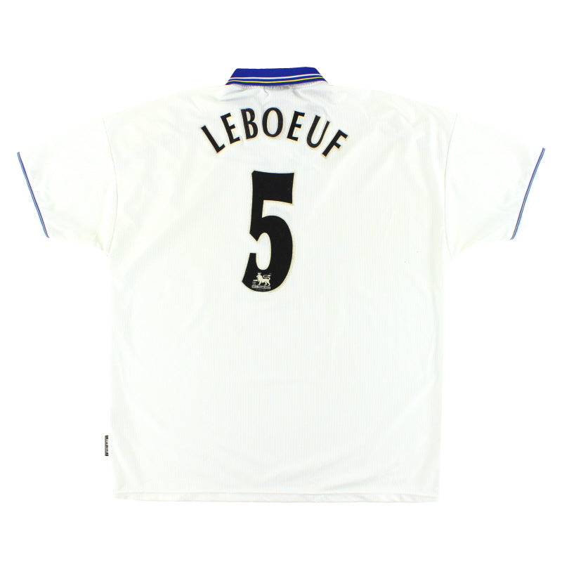 Condition Details – Pristine colour, very smooth material badges and sponsor are excellentDesign – Umbro Features – Le Boeuf #5 to reverse in Lextra felt printAway shirt as worn when Chelsea finished 3rd and 5th respectively in the Premier League and won the 2000 FA Cup final, beating Aston Villa 1-0 in the final with Roberto Di Matteo scoring the winning goal in the 73rd minute. Also worn when Chelsea made it to the quarter finals of the 1999-00 Champions League, losing 6-4 on aggregate against Barcelona.