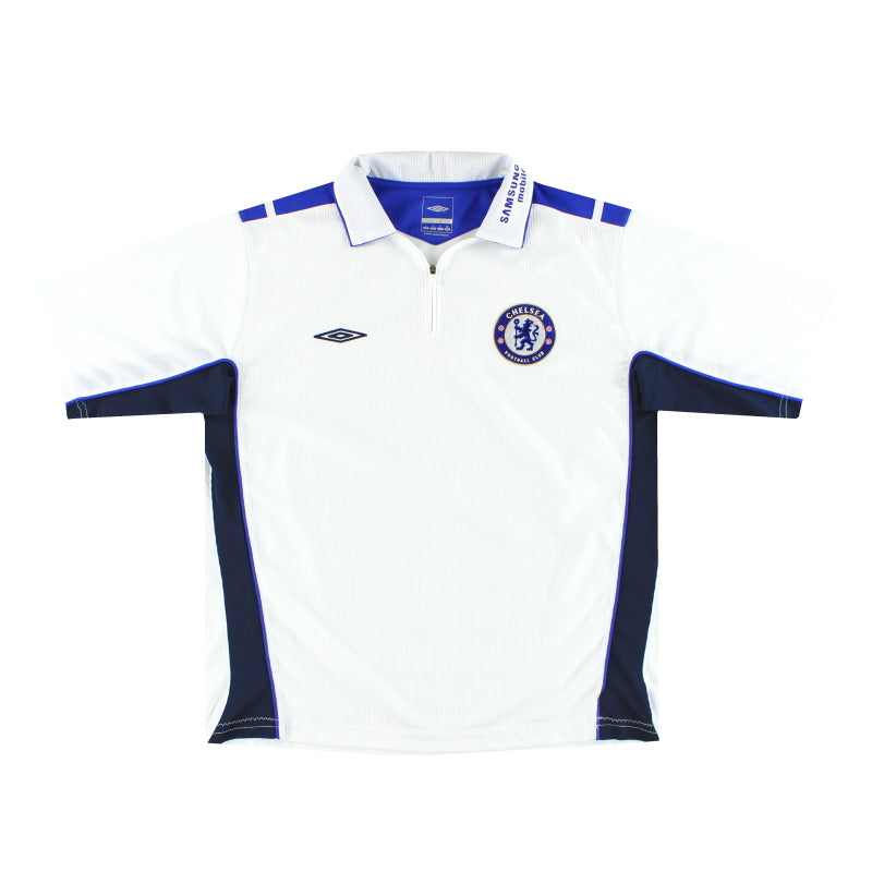 Condition Details – Pristine colour, very smooth material, badges are excellent, great examplePolo shirt released when Chelsea won the Premier League title for the second consecutive season, however they failed to retain their League Cup title, making it to the third round of the competition.
