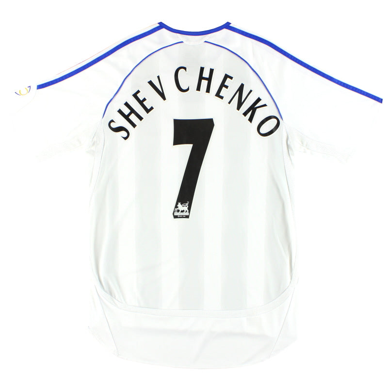 Condition Details – Pristine colour, very smooth material, badges and sponsor are excellentFeatures – Shevchenko #7 to reverse in official PU plastic printAway shirt as worn when the club completed a cup double under manager Jose Mourinho, winning both the FA Cup and League Cup. Mourinho also led the side to the Champions League semi finals, topping Group A which included defending champions Barcelona. After knocking former club Porto and then Valencia out of the comptition the side faced Liverpool in the semi finals with the tie finishing even at 1-1 over both legs the game was settled with penalties with Liverpool progressing to the final.