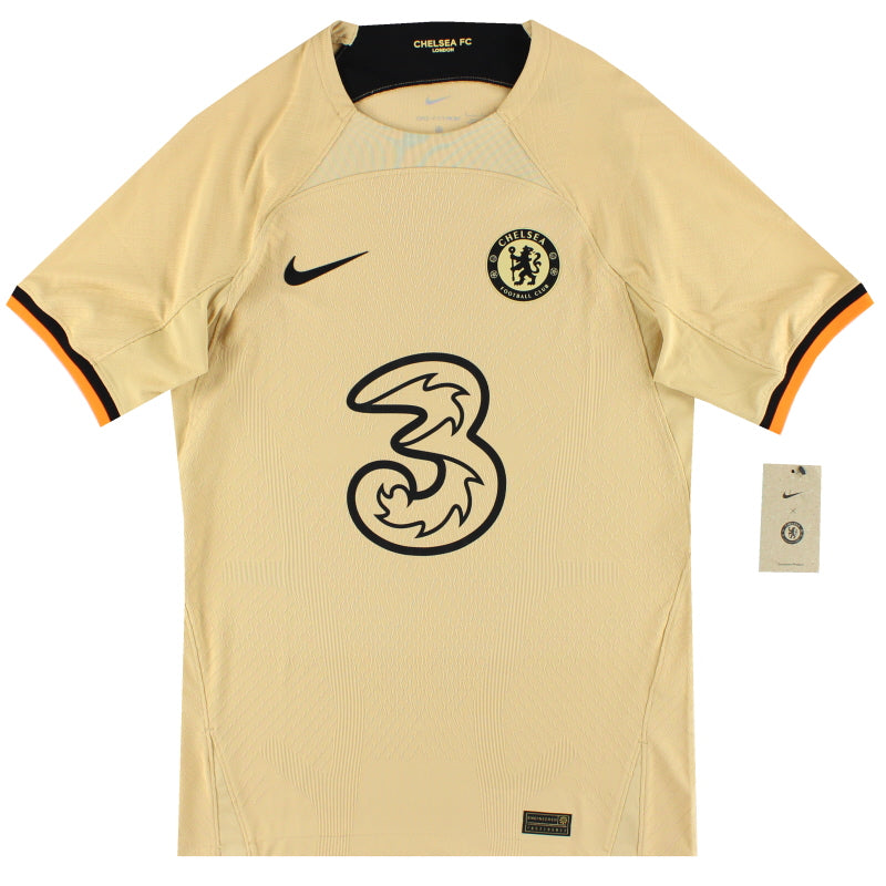 Condition – w/tagsSize – SmallCondition Details – Brand new example with Nike tags attachedDesign – Nike Features – Slim-fit Dri-FIT ADV, more breathable material, rubberised crest, nike logo and sponsor, gold engineered patch Players – James, Kirby, Reiten, Ingle, BrightDetails – Third shirt as worn by Chelsea when they looked to improve on their 3rd place finish in the Premier League in Todd Boehly’s first full season as owner. Chelsea finished the season in mid table in the Premier League with a disappointing start to the season leading to the sacking of Thomas Tuchel. Graham Potter took over as manager and form did not improve with Chelsea only winning 12 of their 31 games with Graham Potter as manager before Frank Lampard took over as interim manager until the end of the season.