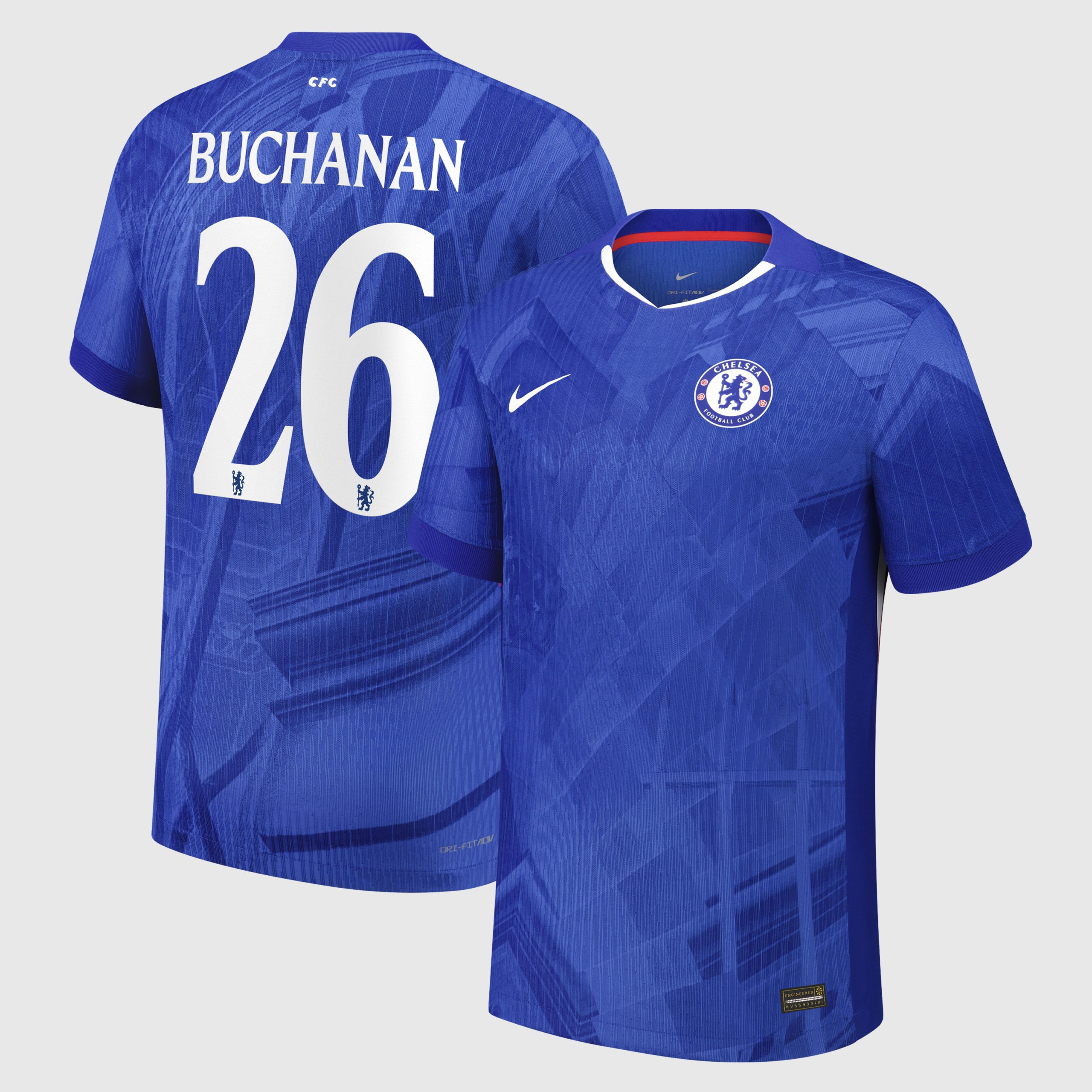 Chelsea Cup Nike Dri-FIT ADV Home Match Shirt 2025-26 – Kids with Buchanan 26 printing