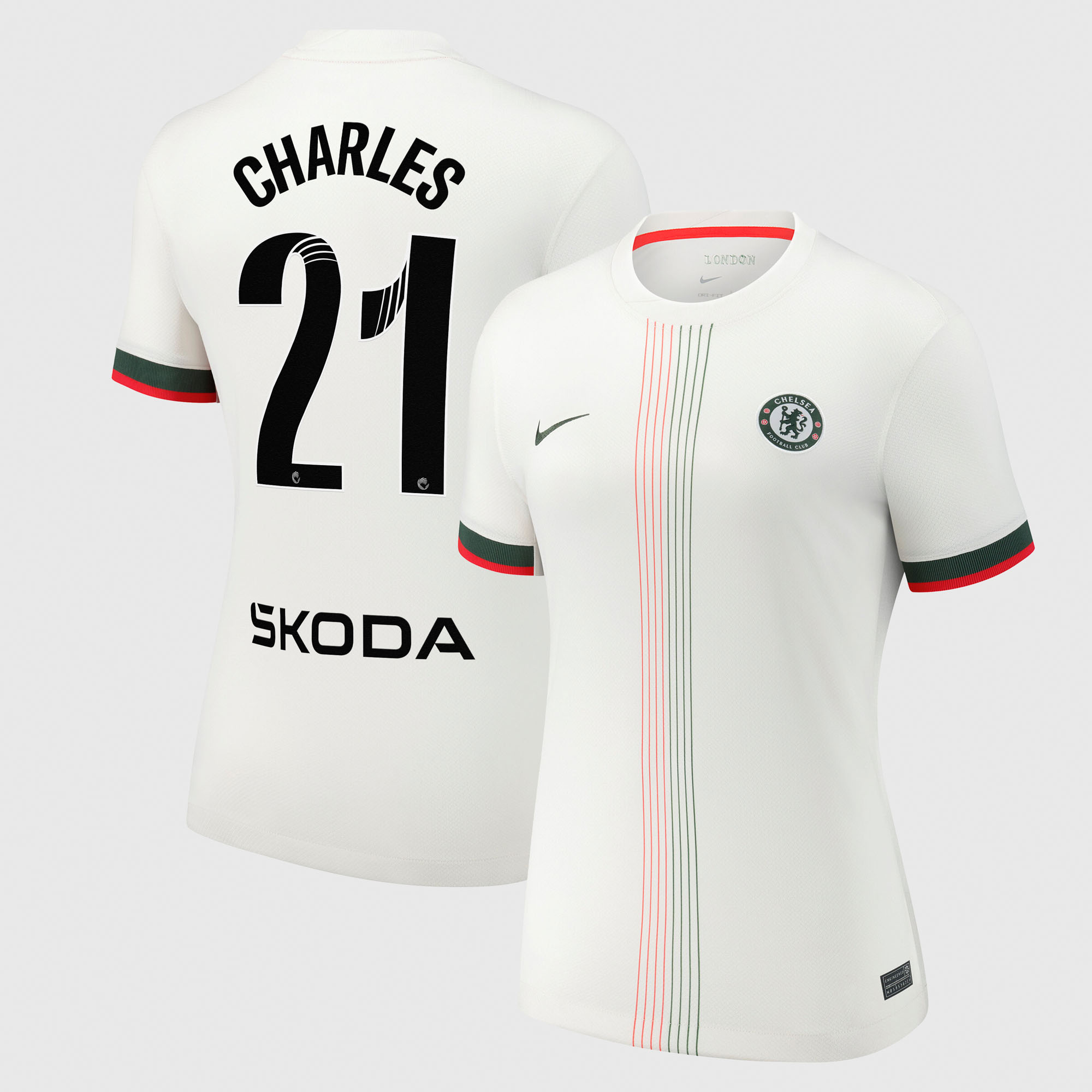 Chelsea WSL Nike Away Stadium Shirt 2025-26 – Womens with Charles 21 printing