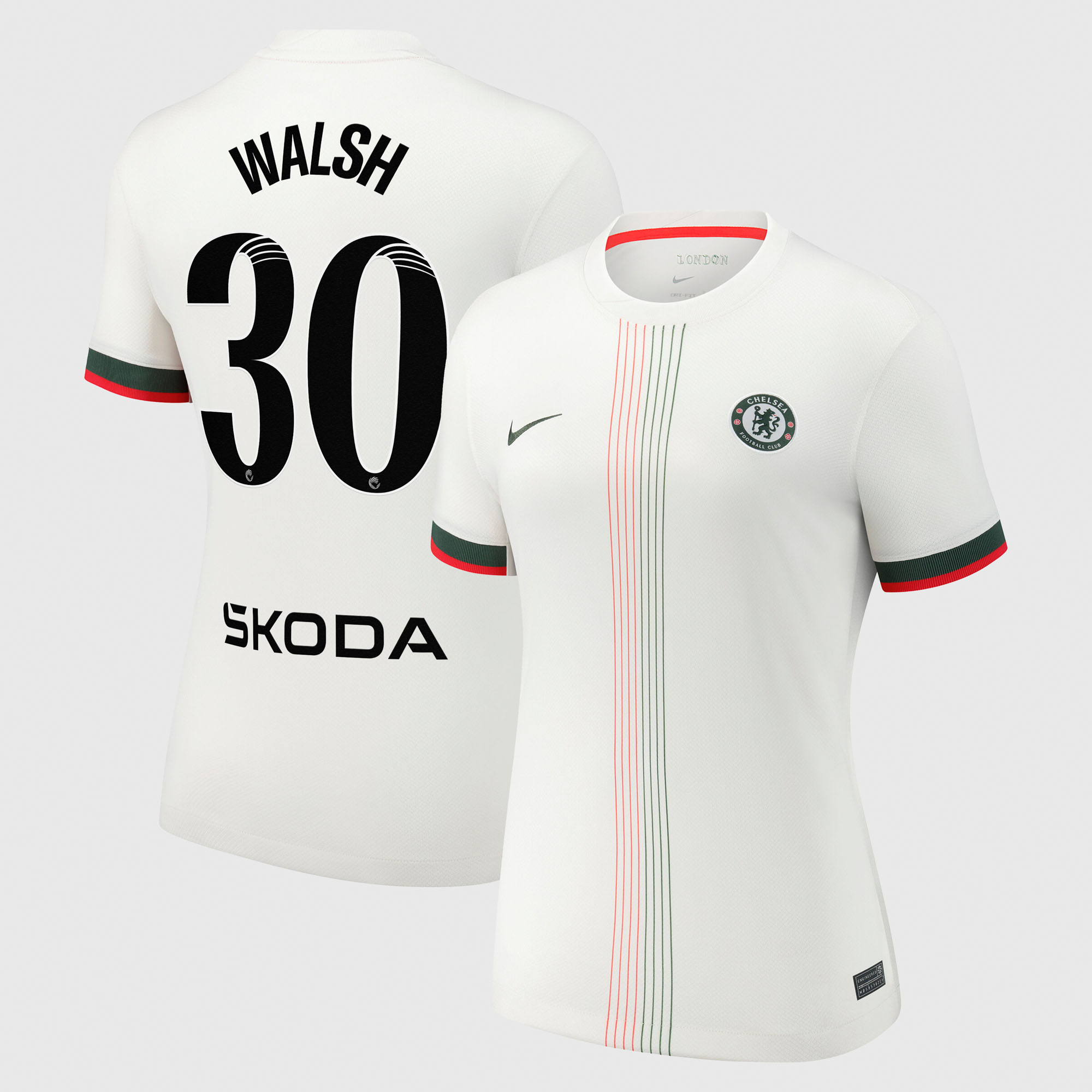 Chelsea WSL Nike Away Stadium Shirt 2025-26 – Womens with Walsh 30 printing
