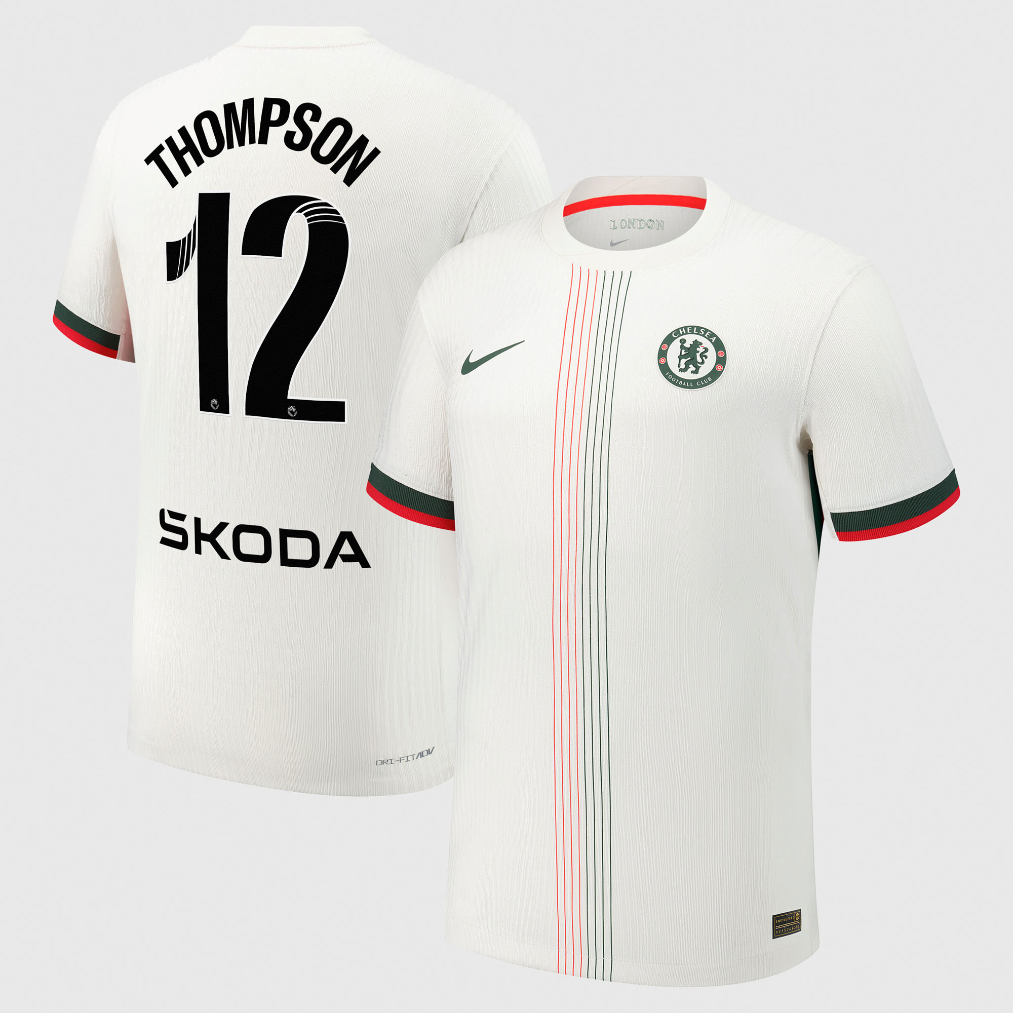 Chelsea WSL Nike Dri-Fit Adv Away Match Shirt 2025-26 with Thompson 12 printing