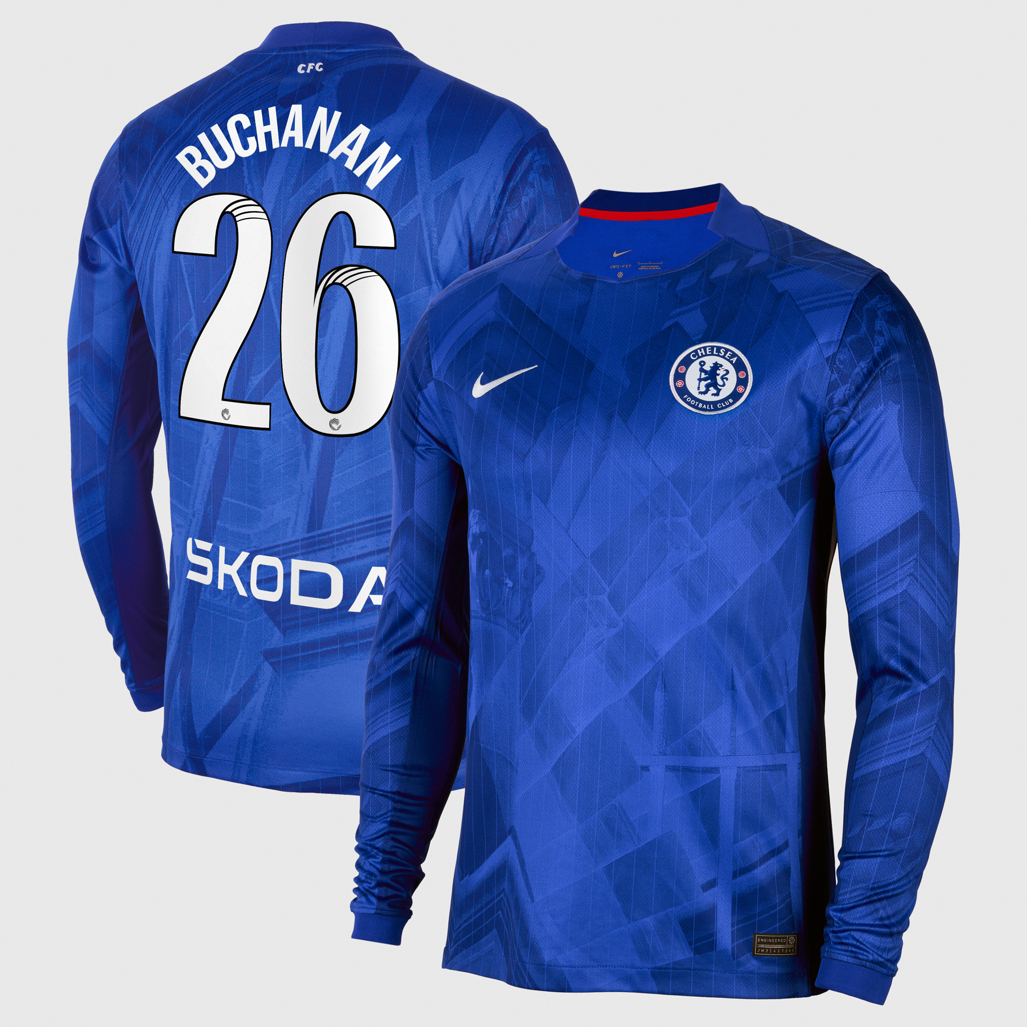 Chelsea WSL Nike Home Stadium Shirt 2025-26 – Long Sleeve with Buchanan 26 printing
