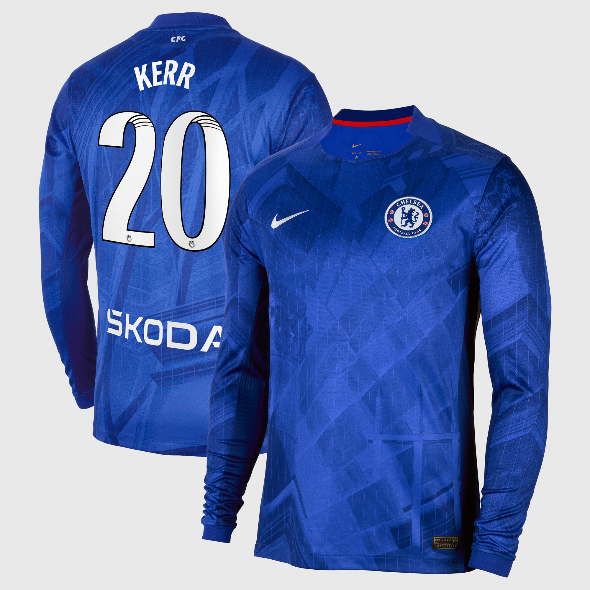 Chelsea WSL Nike Home Stadium Shirt 2025-26 – Long Sleeve with Kerr 20 printing