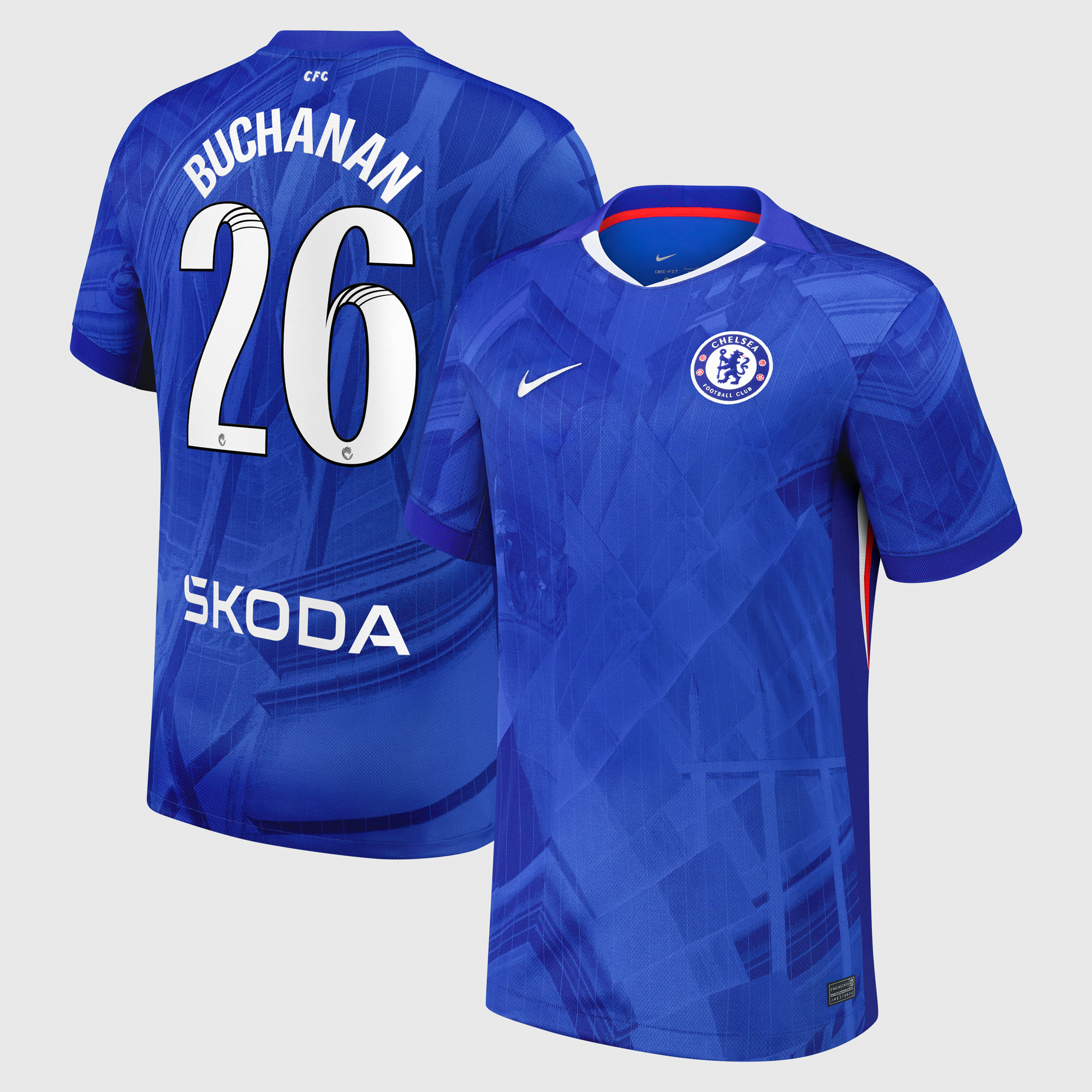 Chelsea WSL Nike Home Stadium Shirt 2025-26 with Buchanan 26 printing