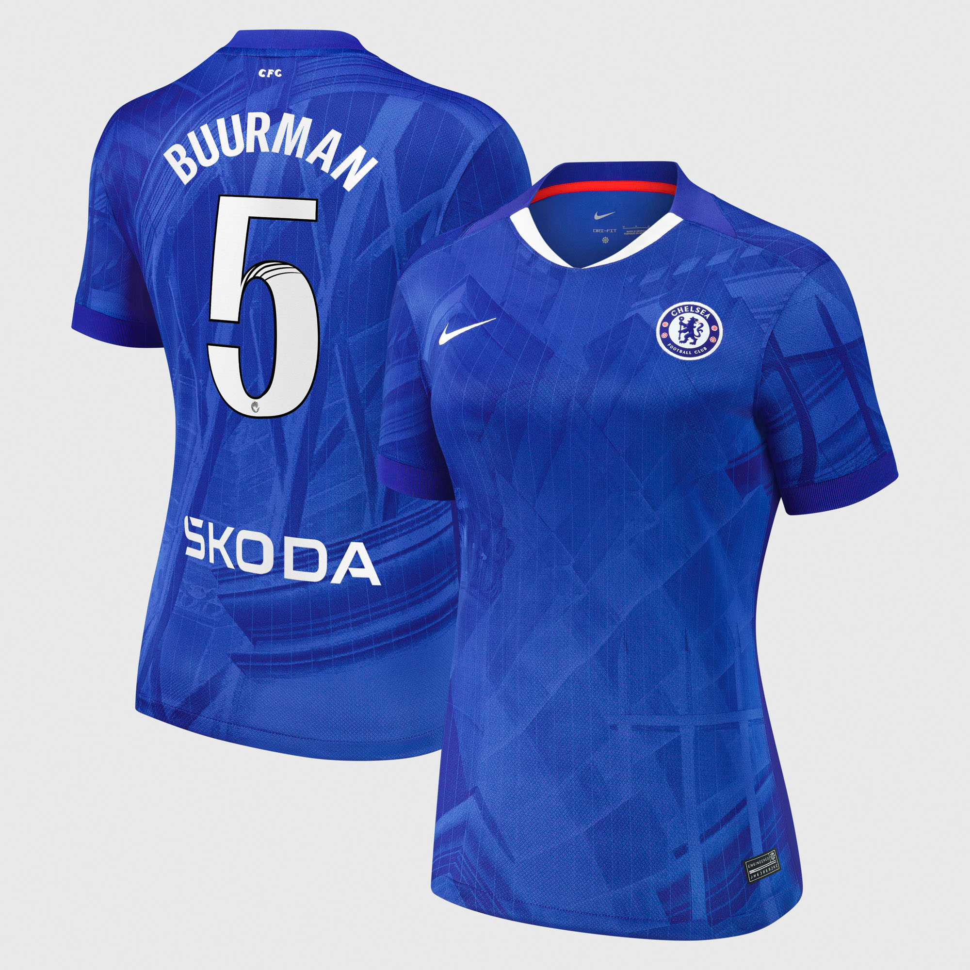 Chelsea WSL Nike Home Stadium Shirt 2025-26 – Womens with Buurman 5 printing
